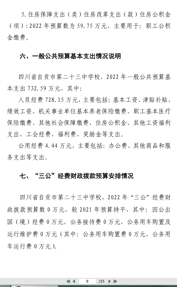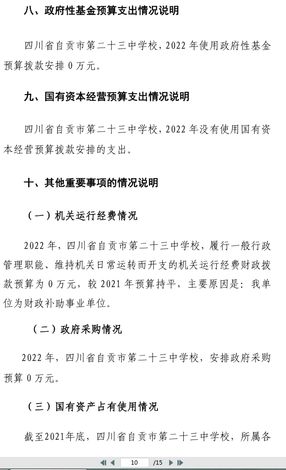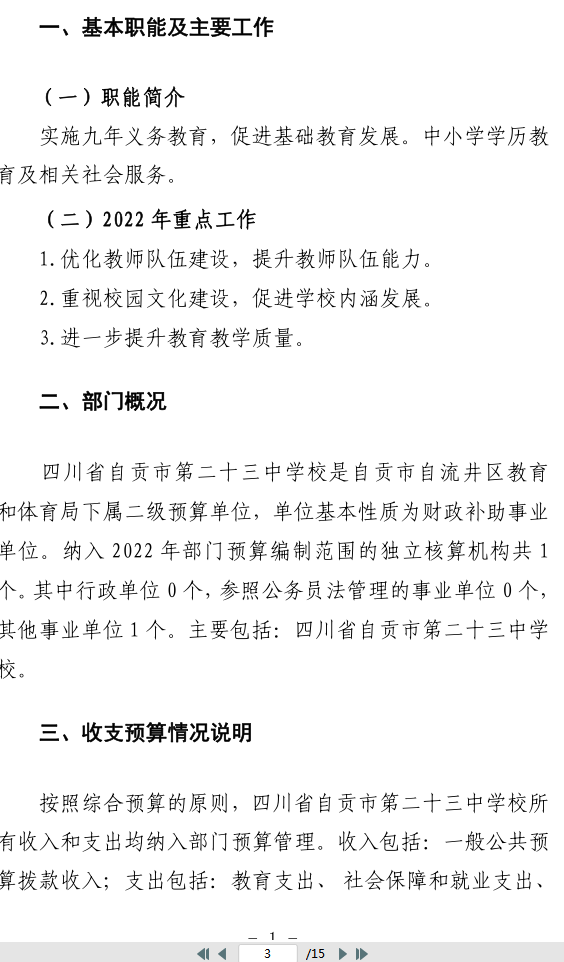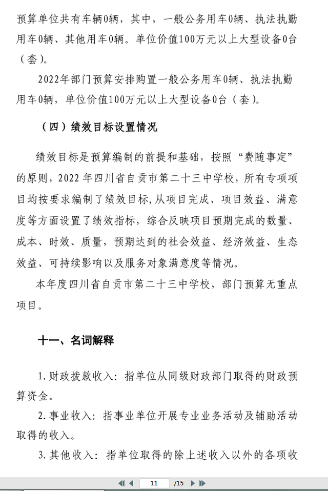 自流井区四川省自贡市第二十三中学校2022年预算公开