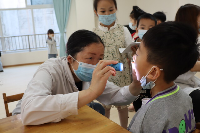 为了更好的了解幼儿的发育生长状况,为幼儿的健康成长、疾病预防提供依据,3月15日,自贡市市级机关幼儿园在新街社区卫生服务中心和自流井区妇幼保健院的医护人员的帮助下,对全体在园幼儿进行了儿童体格检查和师生员工全员核酸检测。