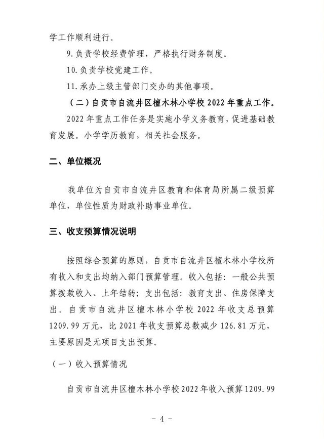 自流井区檀木林小学校2022年预算公开