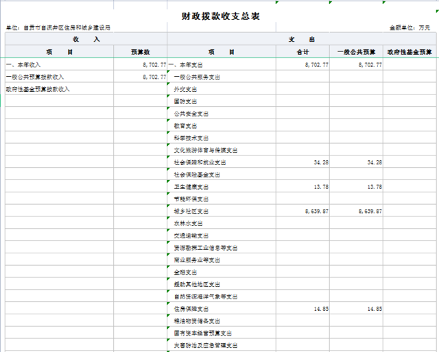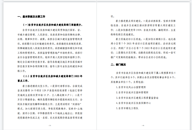 自贡市自流井区住房城乡建设局2022年预算(本级)公开