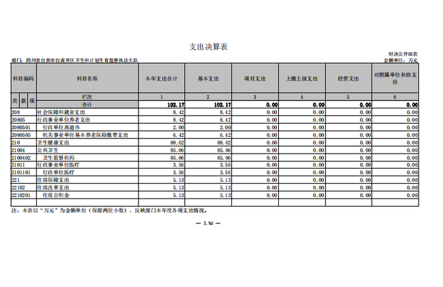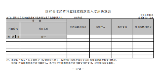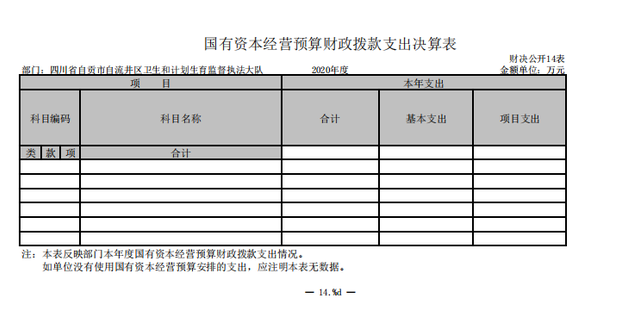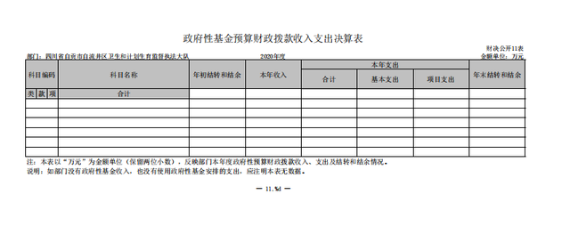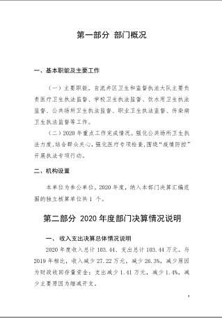 自贡市自流井区卫生和计划生育监督执法大队2020年度部门决算编制的说明