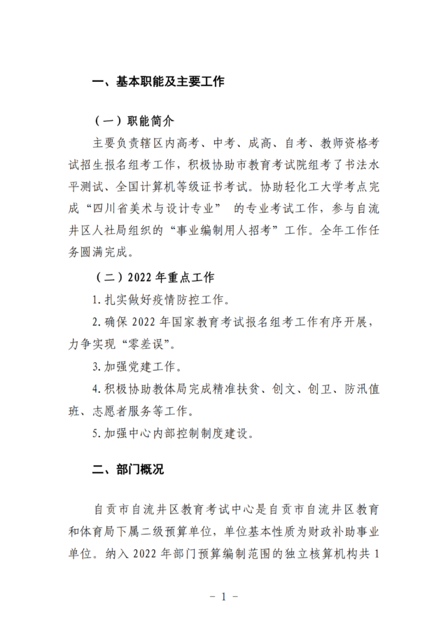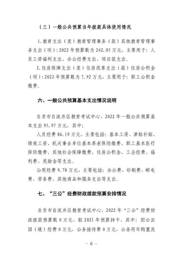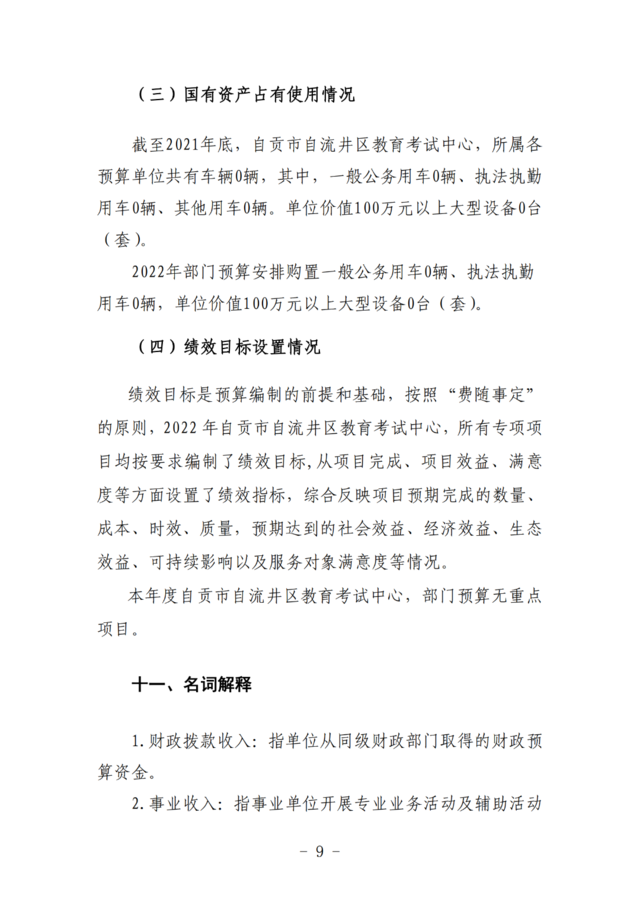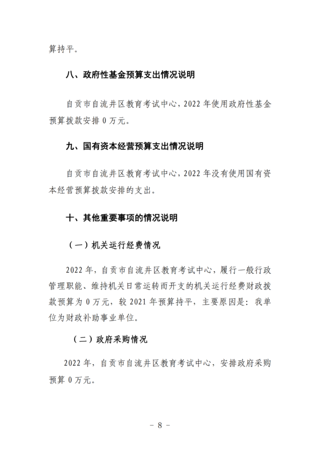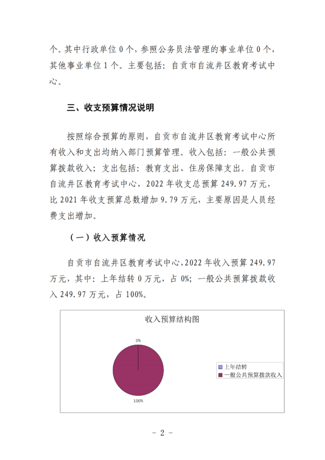 自流井区教育考试中心2022年预算公开