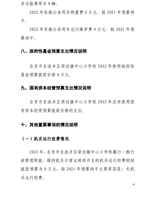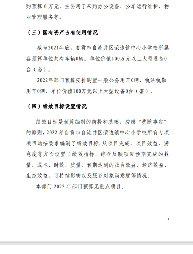 自贡市自流井区荣边镇中心小学校2022年预算公开