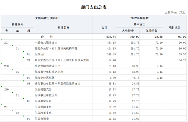 自流井区区委办2022年预算公开