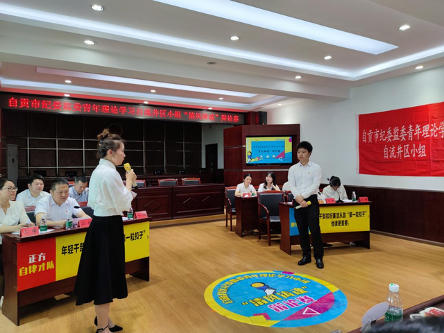 辩题为“年轻干部扣好廉洁从政‘第一粒扣子’——自律更重要?还是他律更重要?”的自贡市纪委监委青年理论学习自流井区小组“清风铸魂”辩论赛正在激烈进行中。
