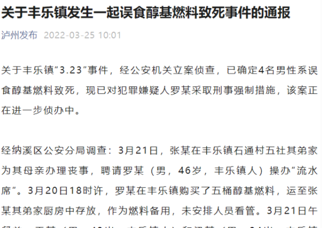 醇基燃料是以醇类(如甲醇、乙醇、丁醇等)物质为原料,通过不同比例配置所生产的一种新型燃料。醇基燃料易燃烧,在餐饮和工业中运用广泛。其外观为无色透明的液体,气味似酒精;以甲醇为主体的醇基燃料,口味上也和酒精相似。一旦醇基燃料管理不当,被误用成白酒,群众不易辨别,容易导致悲剧的发生。