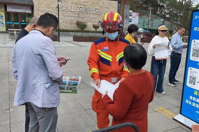 “现在天气逐渐回暖,加之清明临近,大家扫墓祭祀活动增多……”宣传活动中,大队消防宣传人员向景区群众发放了森林防火宣传资料,并从森林火灾的概念、危害、起因以及如何预防森林火灾等方面进行了详细宣讲,广泛宣传国家生态环境保护政策和森林防灭火知识,提醒群众要始终坚持“生命至上、安全第一、科学扑救”原则,牢固树立安全意识,自觉规范用火行为,文明祭祀,严禁携带火源、火种上山,及时主动上报火情……期间,大队消防宣传人员始终保持良好的精神风貌,耐心细致地讲解,在普及防火知识的同时,充分展示了消防救援队伍的良好形象,获得了群众的一致好评。