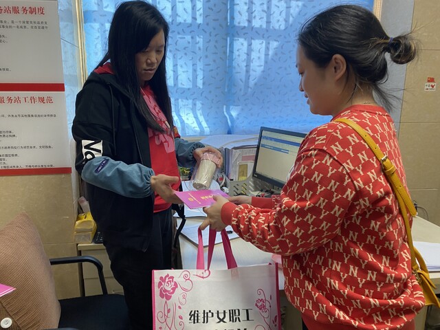 3月10日,自流井区总工会以“三八”妇女节为契机,开展“三八”妇女节普法宣传活动。服务保障部部长席丽灵与工作人员到檀木林社区向社区工作人员宣传《妇女权益保障法》《中华人民共和国反家庭暴力法》等法律法规,普及遇到家暴如何维权、妇女儿童权益如何保护等相关法律知识,并发放《职工健康心理知识》、《预防艾滋,珍爱生命》等宣传手册250余份,解答妇女咨询的问题10余次。