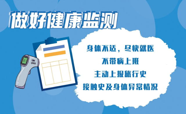 密切关注自己、家人及假期同行人员的健康状况。即便发热、咳嗽、乏力等症状比较轻微也不要自行购药服用,应报告单位并尽快到发热门诊就医。就医时一定要戴好口罩,避免乘坐公共交通工具。排查无异常后再返岗上班。