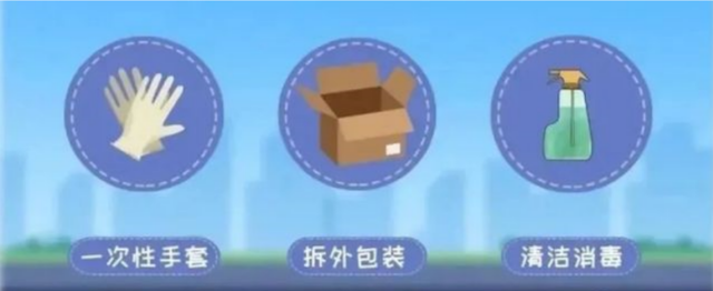 ①取件后建议尽量就地拆封处理,可用75%的酒精或500mg/L 含氯消毒液等对外包装及物品进行擦拭消毒,消毒一层拆一层,尽量不将快递外包装带回家中。在使用酒精消毒时要注意酒精易燃性强,切勿进行大面积喷洒消毒。