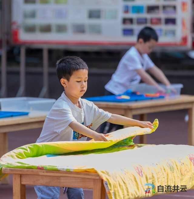 4月11日,自贡市自流井区檀木林幼儿园今天热闹非凡,大班级的幼儿们正在开展一场“生活小能手,自理我最棒”自己能力比赛。活动制定了穿鞋子、夹花生米、玩具分类和叠被子四种不同的自理能力项目,随着裁判员口哨声一响,比赛正式拉开帷幕。