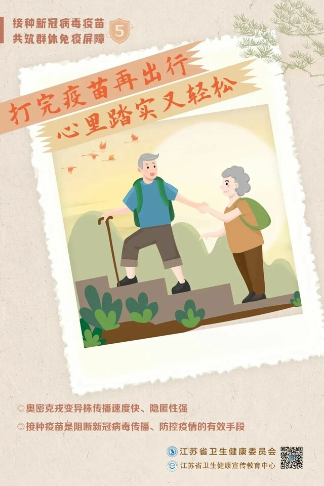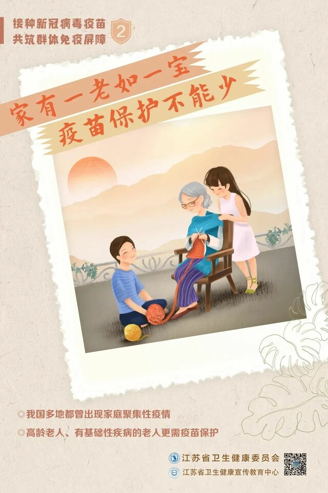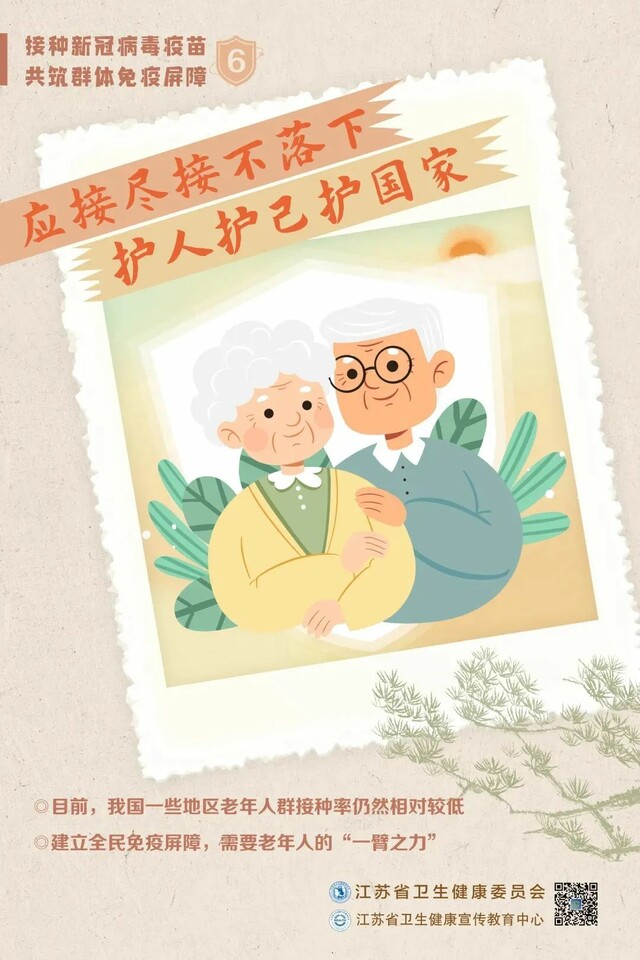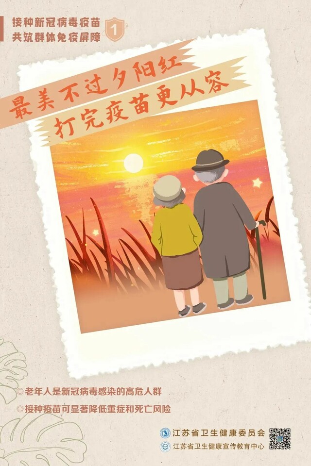 目前流行的奥密克戎变异株传染性强、传播速度快、传播过程隐匿,对于没有接种新冠病毒疫苗的人,尤其是老年人带来的威胁更大。符合接种条件的老年朋友,请尽快接种、全程接种、接种加强针,守护身体健康,共筑免疫屏障!