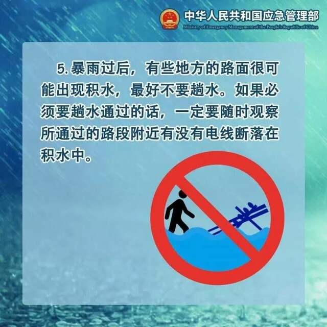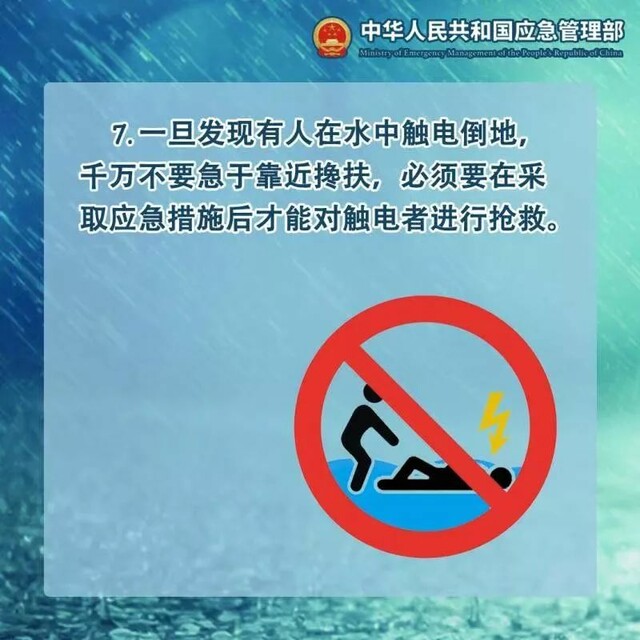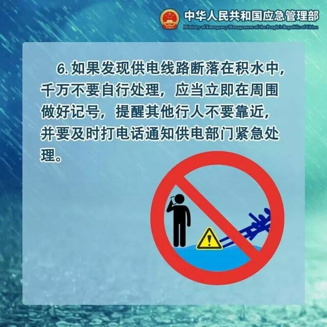 暴雨天气导致不少地方路面被淹,户外暗藏危险,一根掉落的电线,一个小小的通电接口,也会影响你我的人身安全。为了保障安全,要牢记这些安全须知,避免意外触电。
