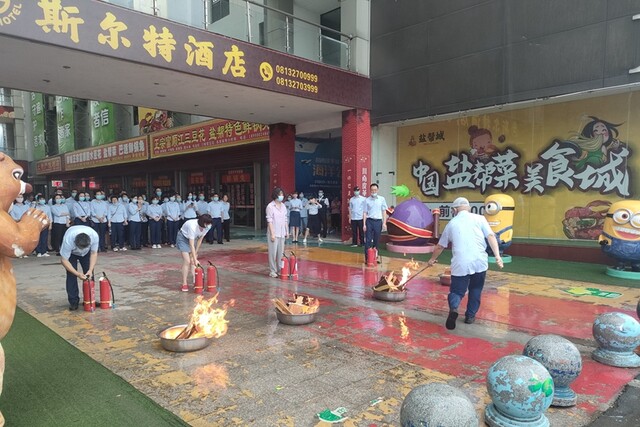 培训过程中,各单位结合单位实际情况,向单位员工详细讲解日常消防基础常识、灭火器的使用、如何正确报火警、火场逃生自救知识、初期火灾的扑救、人员疏散逃生技巧、如何查找和整改火灾隐患、如何开展日常防火巡查检查等内容。现场组织了实战演练,参加演练的负责人参照演习预定方案,迅速引导员工紧急疏散,大家统一捂住口鼻、低姿前行,有序疏散至安全区域,整个演练过程井然有序。随后在讲解员的指导下进行了灭火练习,员工们积极参与,认真学习灭火器的使用方法、灭火要点,现场体验了使用灭火器灭火的全过程。