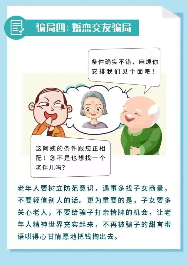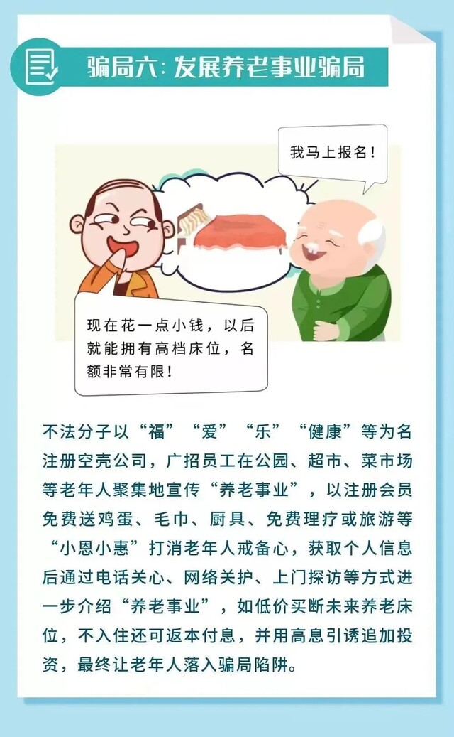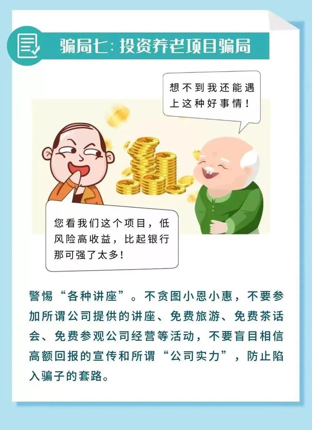 对来历不明、资质不详的养老服务、健康讲座、免费体检等活动保持警惕,不轻信宣传。对于中奖消息保持清醒头脑,不贪图蝇头小利。