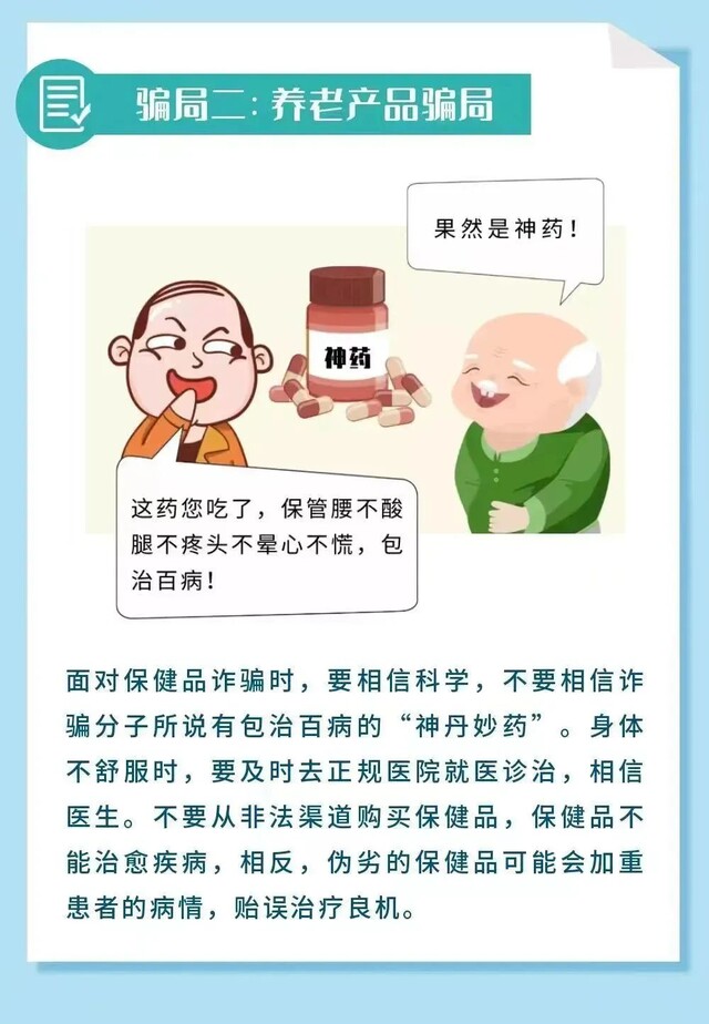 通过正规途径购买商品,并对商家和商品的资质进行认真检查。不要轻信传单、小广告、推销人员的宣传,遇到健康问题要去正规医疗机构就医,遵从医嘱服用药物。