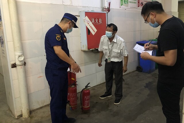 检查中,在市场管理人员的陪同下,联合检查小组重点对农贸市场是否制定消防安全管理制度、灭火和应急疏散预案,是否组织开展消防培训演练,日常防火巡查记录是否完整,安全出口、疏散通道是否保持畅通,灭火器配置数量是否符合要求、放置位置是否方便取用,消火栓是否能够正常供水、是否被遮挡影响使用,应急照明、疏散指示标志设置是否符合要求且质量合格,电动车充电、停放是否规范管理,是否违规进行占道经营等情况进行了全面细致的检查。