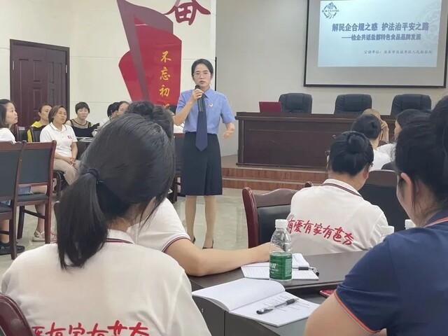近日,自流井区人民检察院“盐·申”团队深入芭夯食品开发有限公司,举行了“解民企合规之惑 护法治平安之路——检企共话盐都特色食品品牌发展”法治宣讲活动。