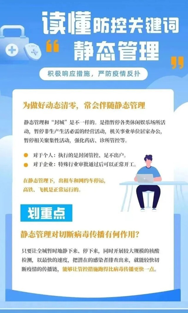 根据疫情管控级别及管控严格程度,由低到高依次分为:静态管理<静态管控<封城。