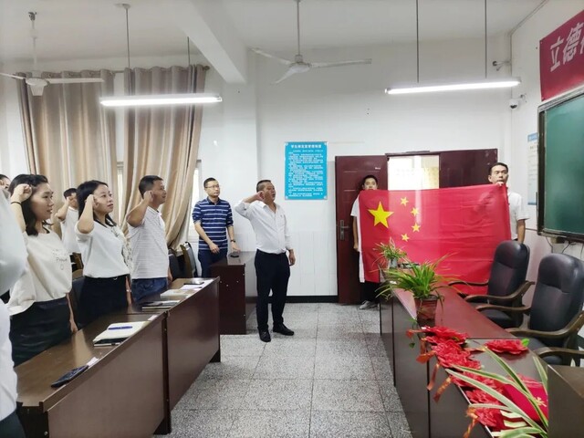 “办人民满意教育,促进乡村全面振兴……”,9月9日中午,自贡35中学校举行教师宣誓仪式,在梁杰校长的带领下全体教师面对鲜红的国旗郑重宣誓,铮铮誓言代表了老师们为荣边地区教育奉献全部智慧和力量的决心!