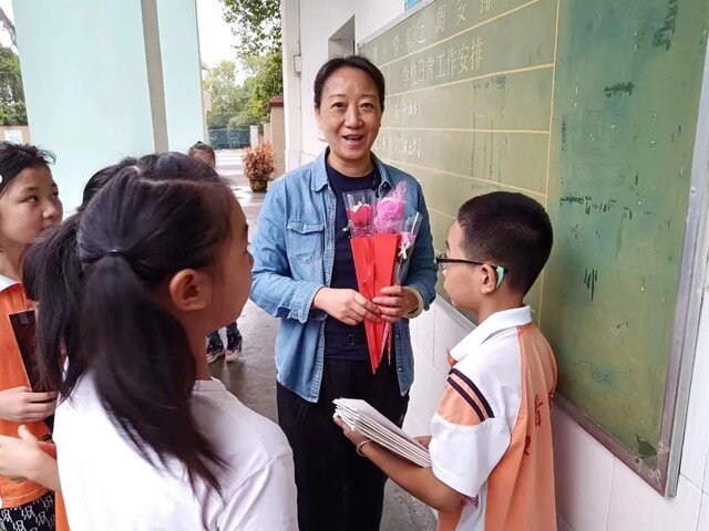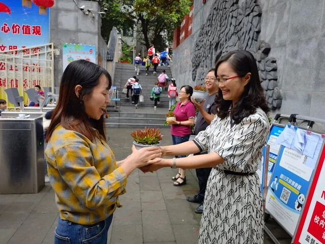 玉壶存冰心,朱笔写师魂。在第38个教师节来临之际,漆树小学校开展一系列庆祝活动。校长龚建华和副书记冷晓芳带领学校班子成员在学校门口为漆树小学校的全校教师送上绿植,祝福老师们节日快乐。并对在2022学年度中为全校工作作出突出贡献的4名“优秀教育工作者”、“优秀教师”和“优秀班主任”予以表彰。