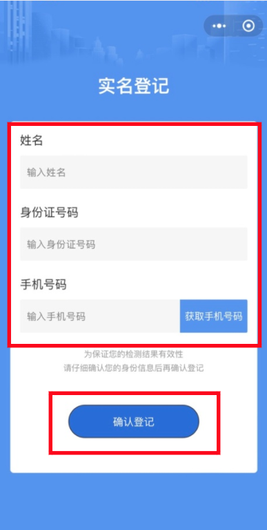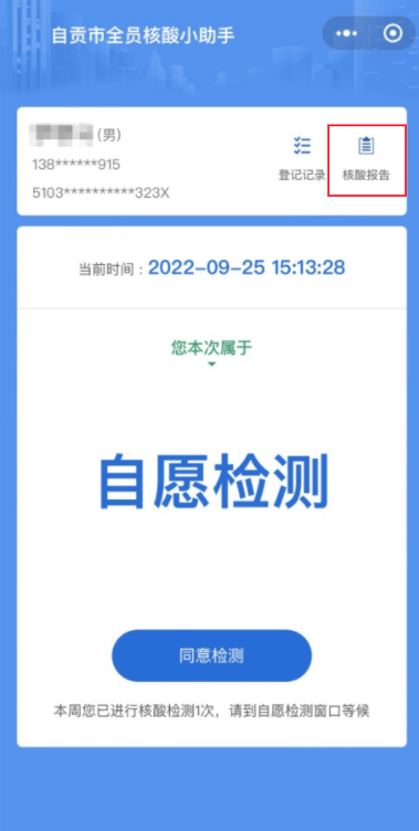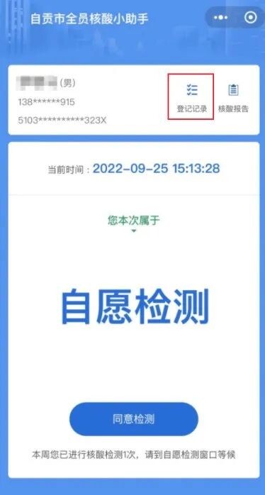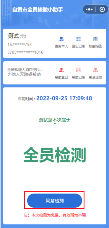 扫码完成实名认证后,每人每周有一次全员检测名额,具体操作如下: