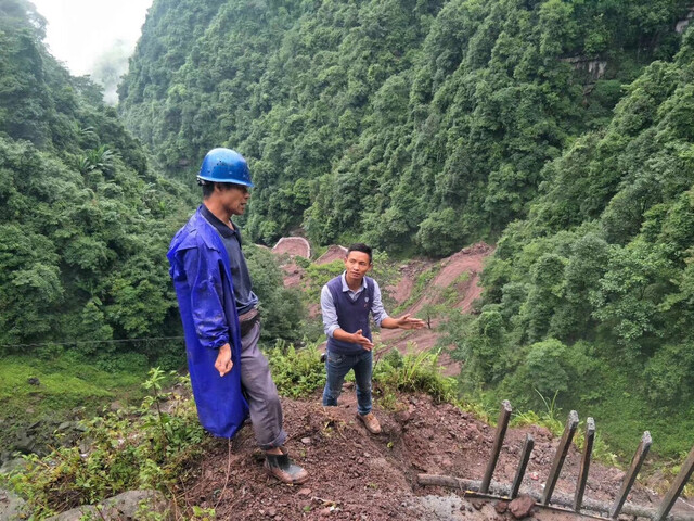 立克拢拢(左二)在网红路——西泥湾二十四道拐施工现场。