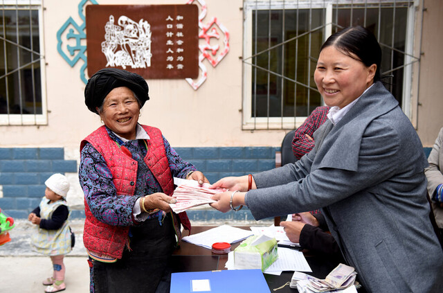 陈望慧向村民发放玫瑰花款。资料图 小金县委宣传部提供