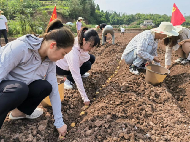 ●连日来,荣边镇全体党员干部及职工到干塘村秋冬马铃薯基地助力村民抢种。党旗飘扬在田间一线,以实际行动营造助农秋耕的浓厚氛围。