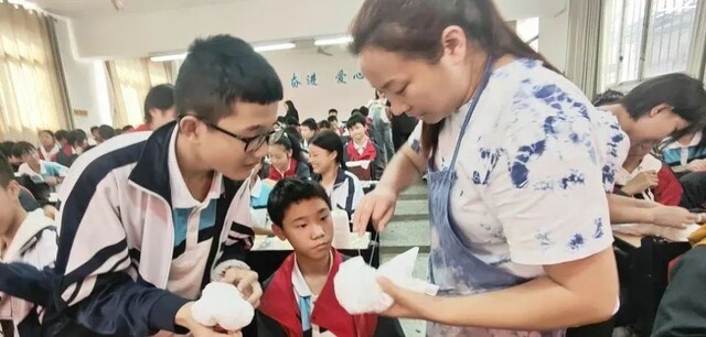 ●近日,“品味传统文化 启航复兴梦想”国家级非遗自贡扎染进校园活动在我区举行。师生们现场了解自贡扎染的基本知识、制作扎染作品,零距离感受扎染艺术的魅力,促进青少年健康成长。