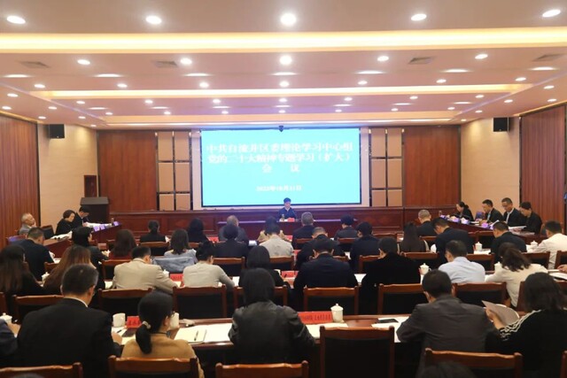 10月31日,自流井区召开区委中心组党的二十大精神专题学习(扩大)会议,市政府副市长、区委书记黄雪智主持会议。要求迅即掀起学习宣传贯彻二十大精神热潮,全力推动二十大精神落地落实。奋力“筑三圈建双城”,为拼经济搞建设和冲刺全年目标任务,贡献更多自流井力量。