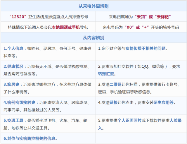 来电归属地显示为未知或未标记的、来电号码为“00”或“+”开头的境外号码,并不是流行病学调查的工作电话。