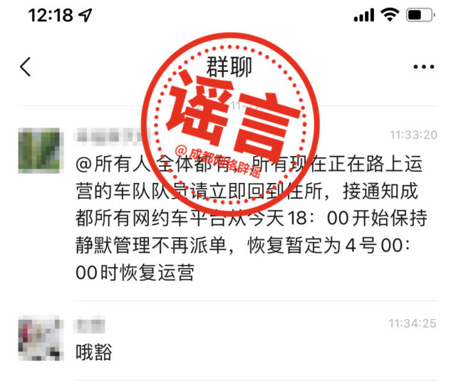 11月27日,本地微信群、朋友圈等流传着一则通知称:“@所有人全体都有,所有现在正在路上运营的车队队员请立即回到住所,接通知成都所有网约车平台从今天18:00开始保持静默管理不再派单,恢复暂定为4号00:00恢复运营”。该消息被大量转发后引发部分市民和网约车司机关注,担忧疫情日趋严峻、影响正常出行等问题。
