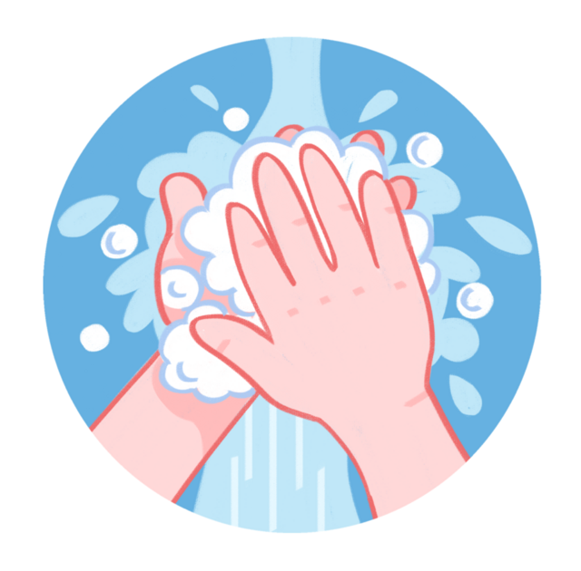 使用流动水、肥皂、用七步洗手法把手彻底清洗干净。