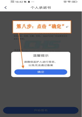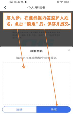 第八步:确保由监护人签名,点击“确定”。
