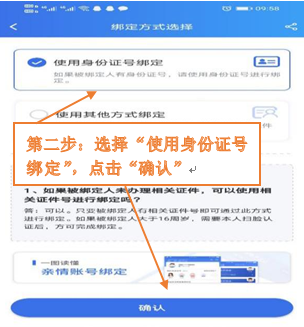 第二步:选择“使用身份证号绑定”,点击“确认”。