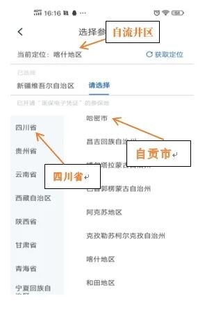 第九步:选择参保地“四川省-自贡市-自流井区”。