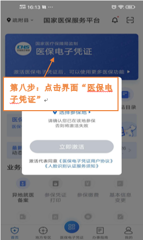 第八步:点击界面“医保电子凭证”,开始激活医保电子凭证。