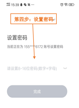第四步:设置密码,密码由8-16位数字、字母组成。