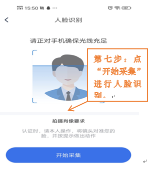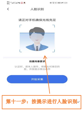 第十一步:进行人脸识别(16岁以下儿童跳过此步骤)。