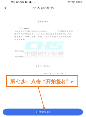 第七步:系统生成个人承诺书,点击“开始签名”。