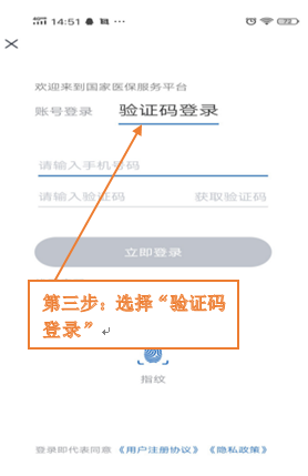 第三步:选择“验证码登录”并输入手机号码,点击获取验证码并输入验证码后,点击“立即登录”。