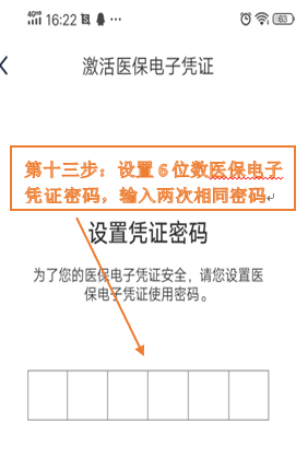 第十二步:设置6位数医保电子凭证密码,输入两次相同密码。