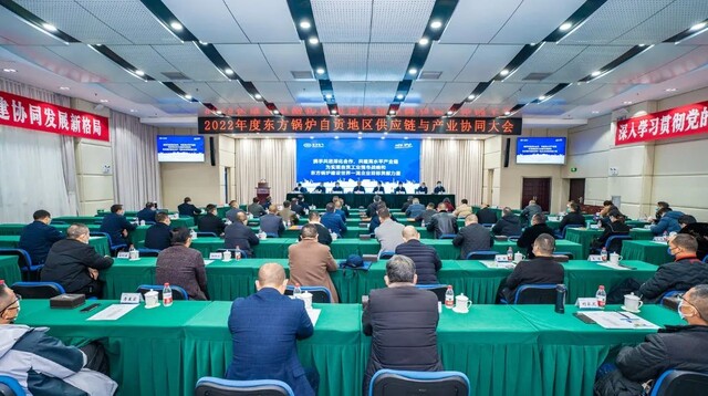 并肩同行共享新机遇,通力合作共赢新未来。在全国掀起学习贯彻落实党的二十大精神热潮之际,为助推自贡打造工业强市,聚焦能源装备产业发展,带动自贡地区相关产业链协同合作、共享发展机遇,在更广领域、更深层次推进战略合作,实现企地互利共赢,促进自贡地方经济高质量发展,12月14日,东方锅炉以“协同合作 共享发展机遇”为主题召开2022年度自贡地区供应链与产业协同发展大会。自贡市委常委、常务副市长肖冰东,市政府党组成员、副市长、自流井区委书记黄雪智,东方锅炉党委书记、董事长林光平,总经理、党委副书记聂立,总会计师程金龙,副总经理何维、许辉,纪委书记胡战利出席大会。