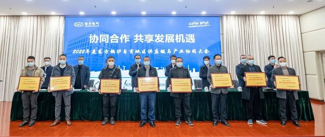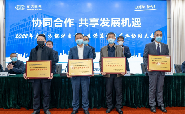 自贡市委、市政府和东方锅炉领导为优秀供应商颁发了东方锅炉“自贡地区优秀供应商”奖牌。