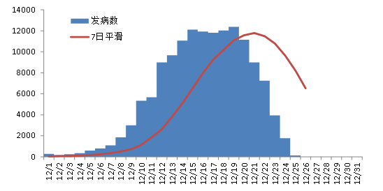 根据居民自填的核酸或抗原检测阳性时间分布来看,全省阳性检出的高峰期集中在12月12日~23日,目前日新增感染已处于回落阶段。从居民症状出现时间分布来看,症状首次发生在12月10日开始上升,24日已降至8~9日水平,新发症状回落更早,其时间趋势较病毒检出时间要早2日左右。