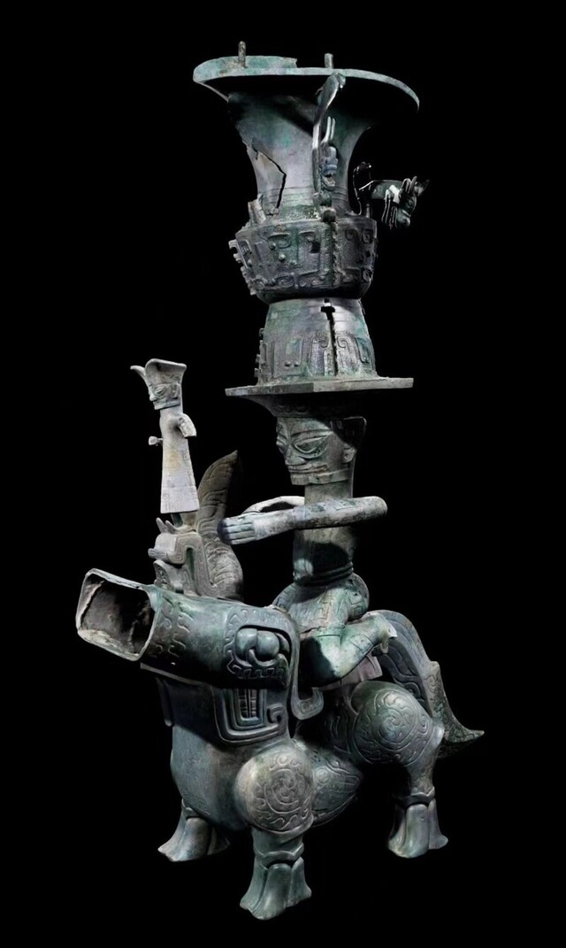 三星堆青铜神兽与顶尊跪坐人像成功“合体”。图片由四川省文物考古研究院提供