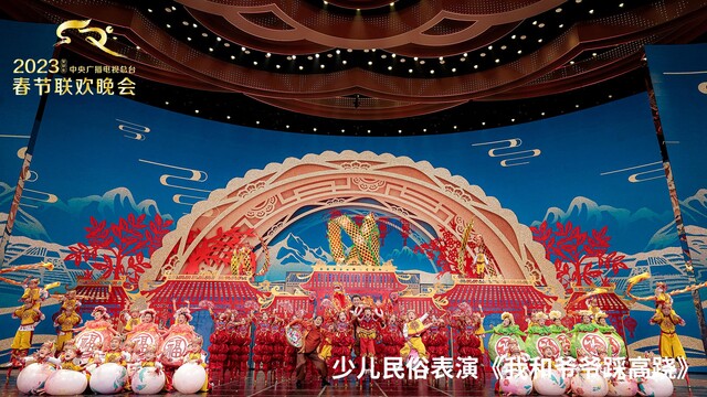 南北戏种同台献艺、三代表演者一同亮相。《华彩梨园》中,中国现存最古老剧种之一的福建莆仙戏首次登上春晚舞台,《踏伞行》婉转细腻,手眼身法步无不展现古老戏种的独特生命力。杂技节目《龙跃神州》展现了传统非遗中幡技艺的惊险惊艳与气势磅礴。少儿民俗表演《我和爷爷踩高跷》更是将胶州剪纸、胶东花饽饽、海阳秧歌、山东小调等大量的非遗元素融入其中,讲述了中国民间艺术的传承。
