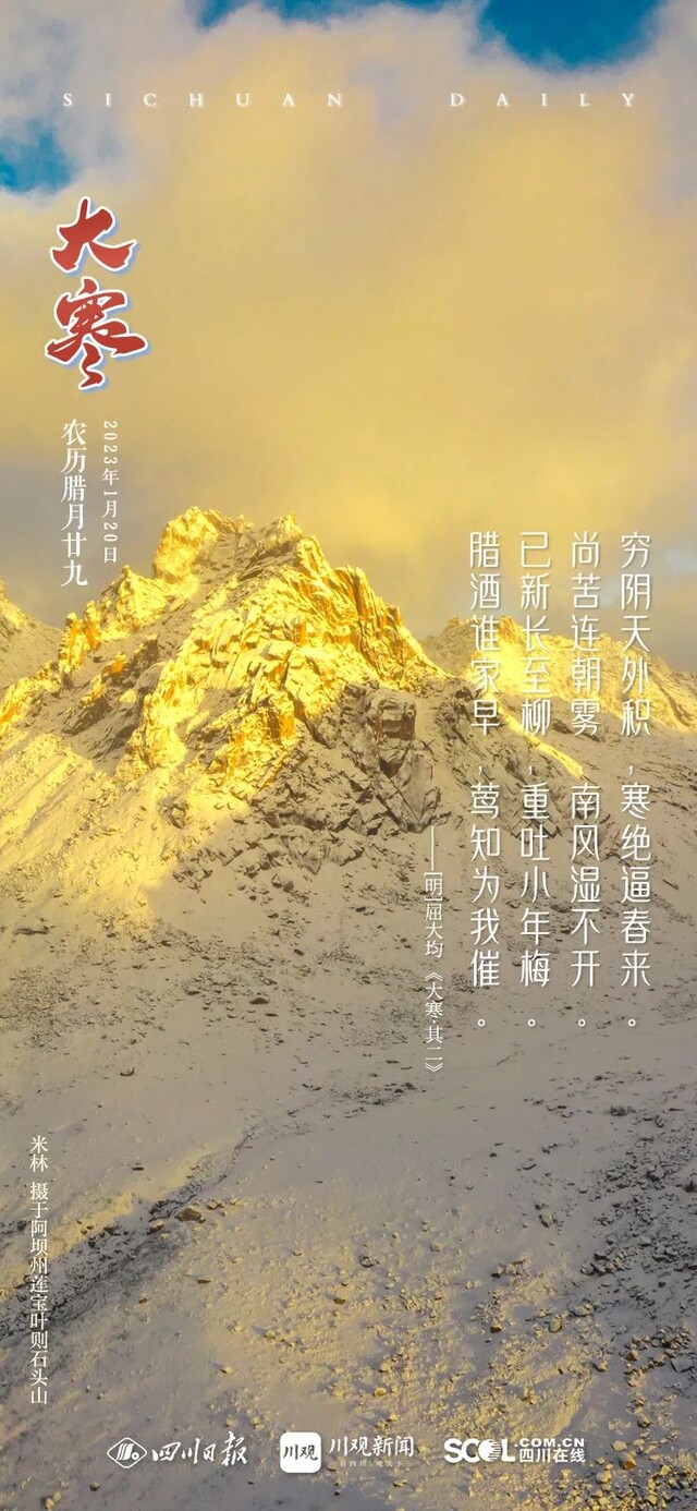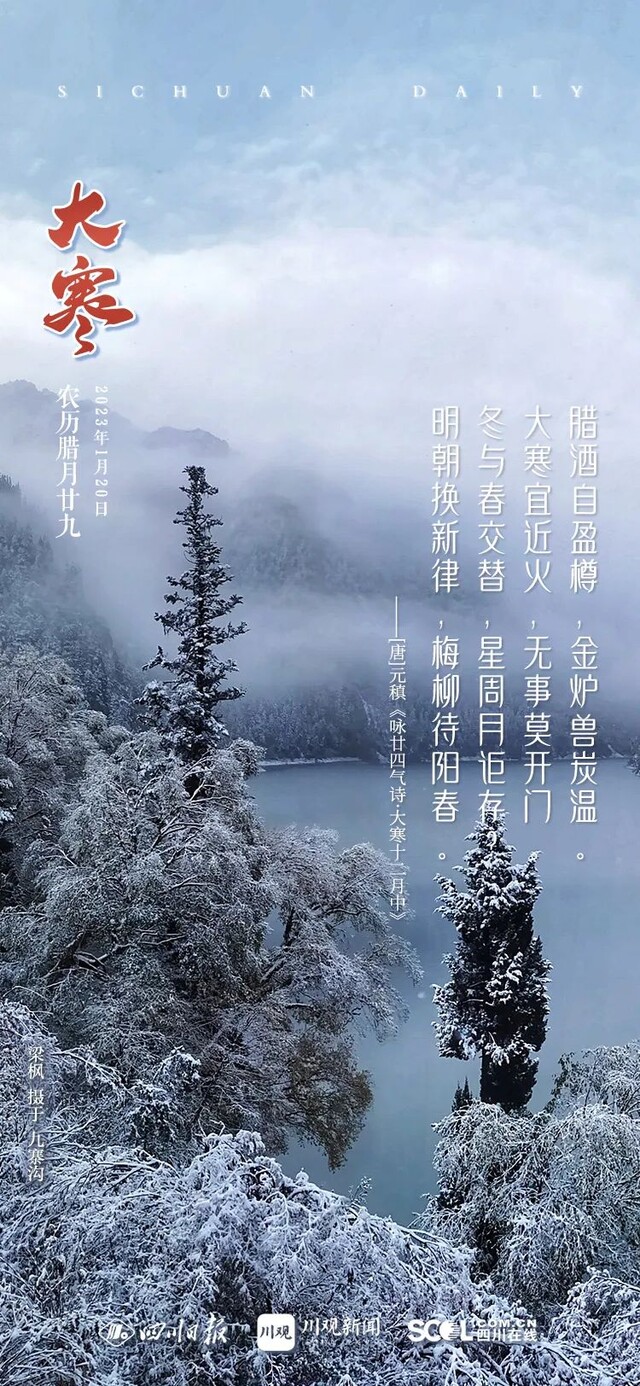 民谚有云,小寒不如大寒寒,大寒之后天渐暖,大寒是一年中阴阳转换的重要时机,也是冬天结束,春季到来的转折点。“年光微雨后,春发大寒初”,大寒也意味着严冬即将结束,春天就要到来。