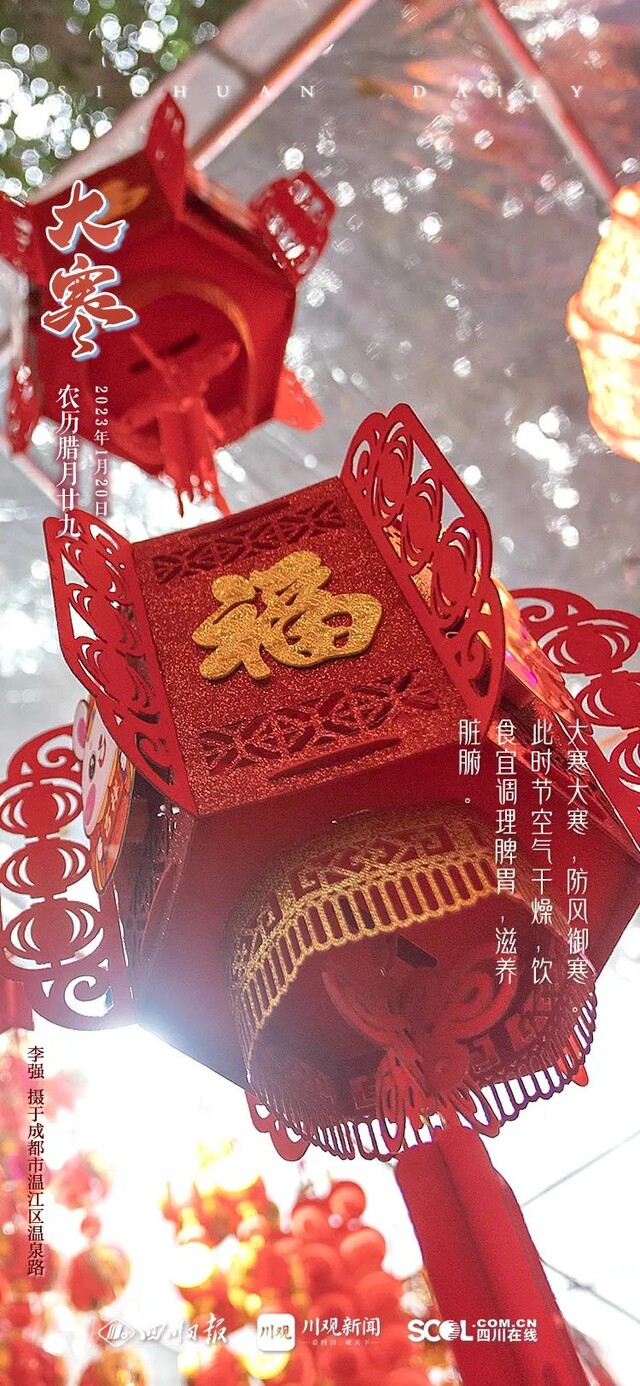 ● 大寒是二十四节气中的最后一个节气,素来有“大寒迎年”的说法。年关将至,浓郁的“年味”开始弥漫。腌制年肴、准备年货、扫尘洁物,企盼好运与新春一同到来。凛冬将尽,春天正在向我们走来,蓄积继续前行的力量,等待新年钟声的敲响,一起迎接春暖花开。